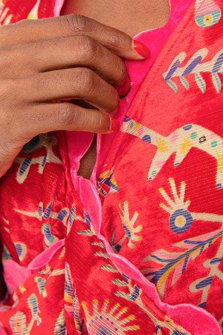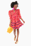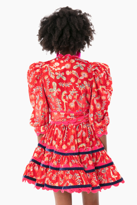 The Gladys Rik Rak Mini Dress features a V-neckline, self-tie bow, tiered hem, scallop edge and velvet devore details for a handcrafted look. Unique and bold, this dress will take you from dining al fresco to dancing the night away on a beach. Pair with heels and statement earrings for an outfit that is sure to wow.