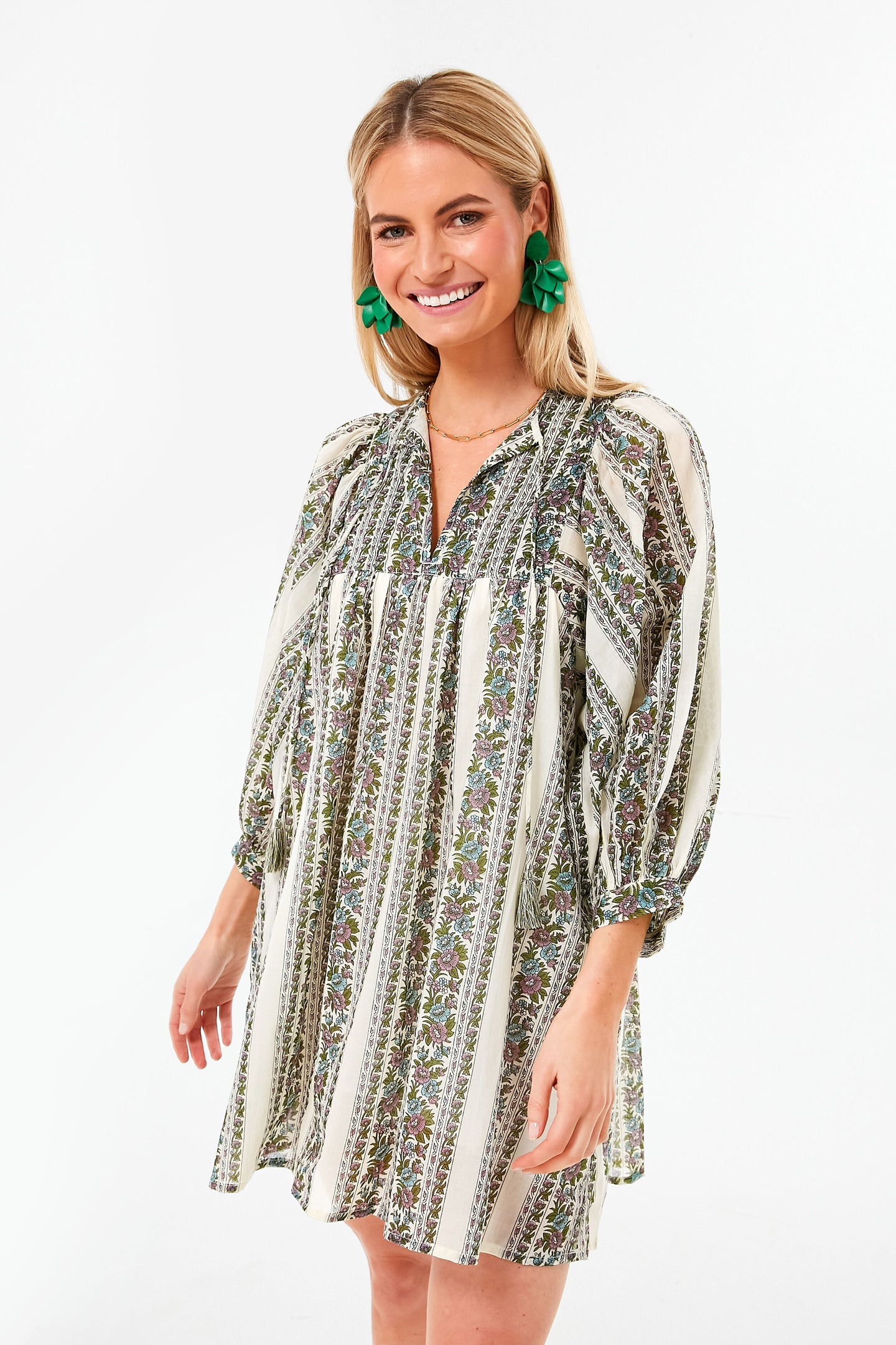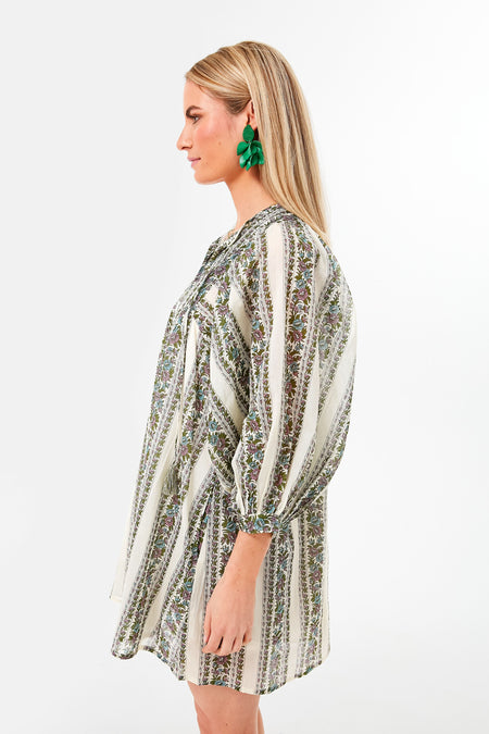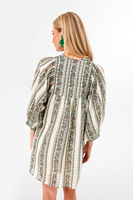 In beautiful printed cotton, the Goa Stripe Daisy Dress is the ultimate vacation style. The most effortless silhouette with a relaxed fit for easy sunny days and slow mornings, this boho-chic number features tassel ties at the neckline and three-quarter blouson sleeves that can be worn long or bunched at the elbow to create more volume. Throw this chic mini over a swimsuit to lounge poolside and enjoy a good book, then add sandals and a tote for an outdoor lunch at a cute café.