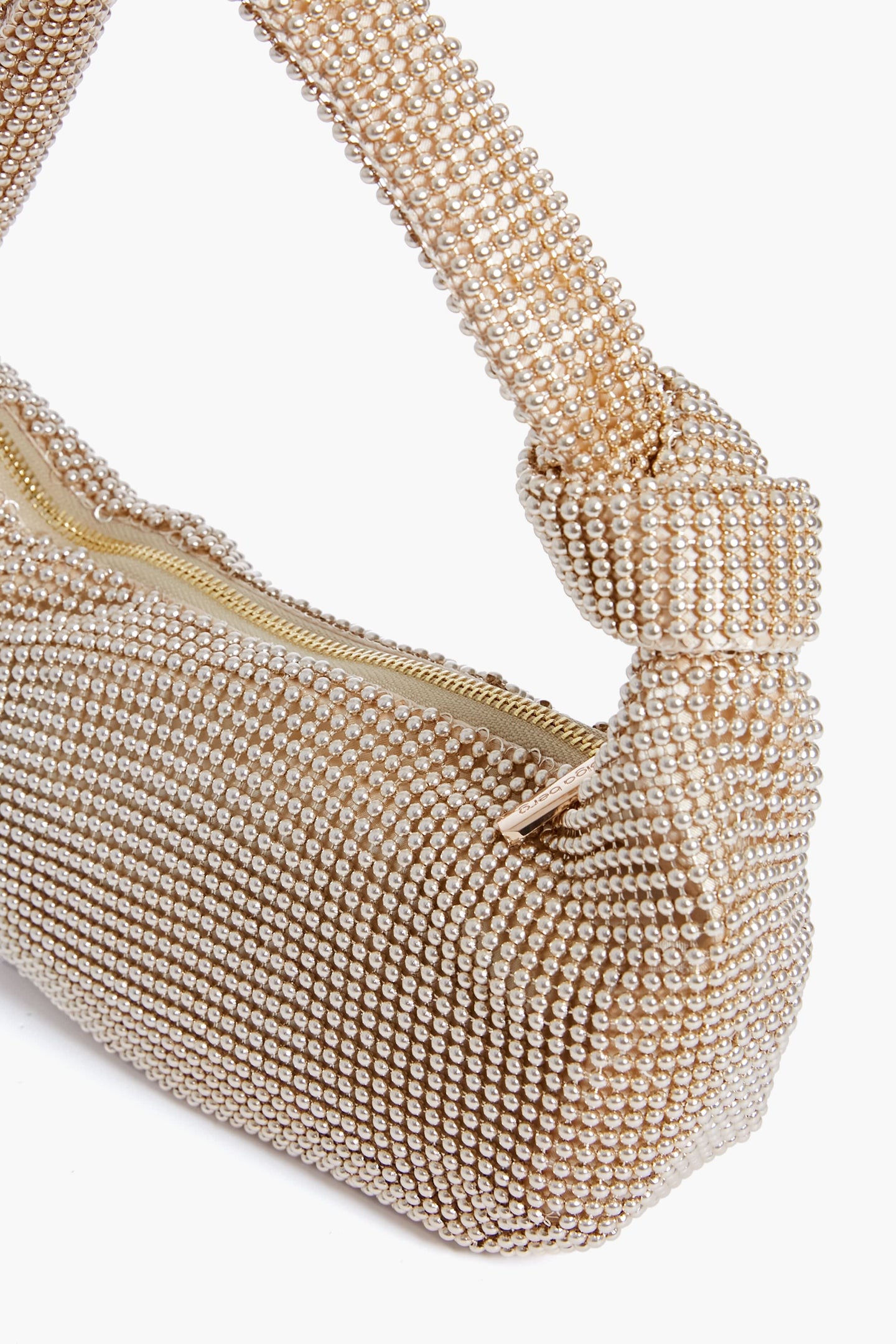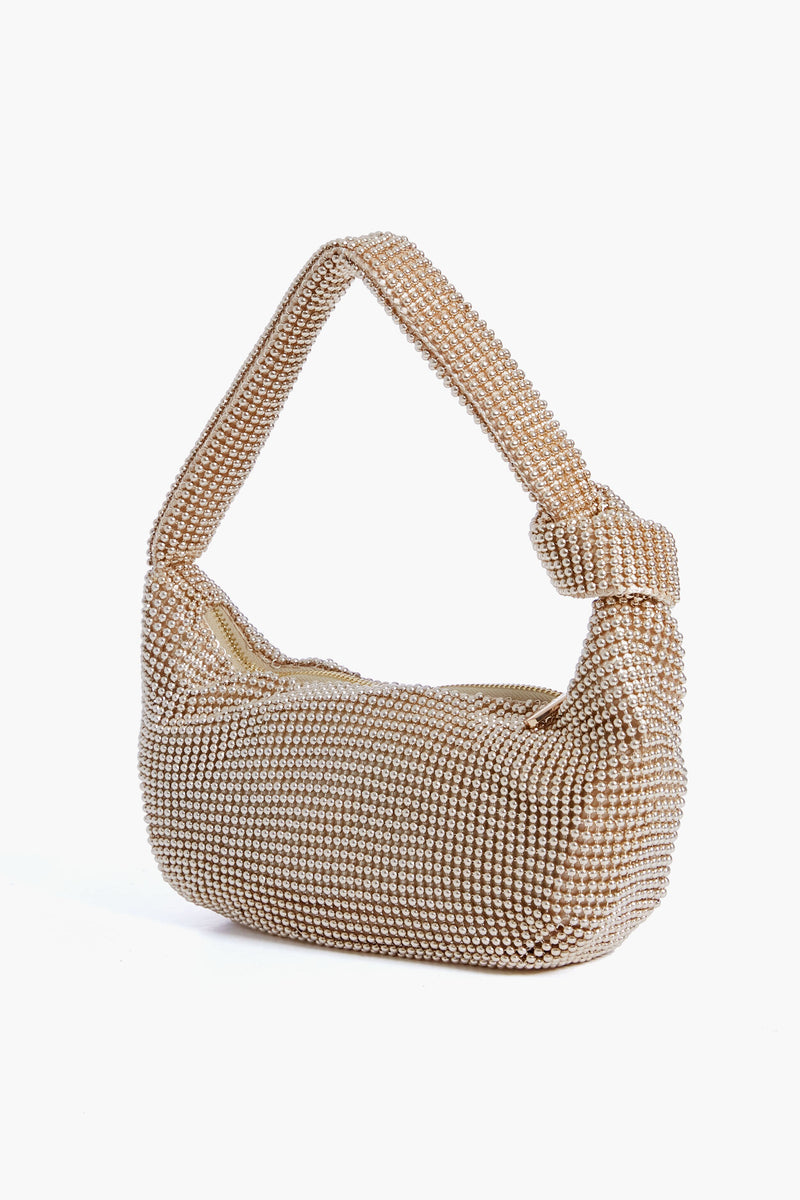 The Gold Franka Ball Mesh Shoulder Bag is a true multi-tasker. Featuring a soft mesh handle with an asymmetrical knot accent and zip top closure, this effortlessly stylish piece will keep your essentials safe and secure on your next night out, no matter where the evening takes you. Pair with your favorite LBD and gold heels for dinner and drinks, glitzy weddings, or cocktail parties this season!