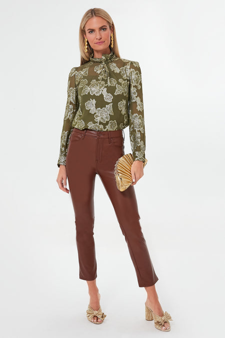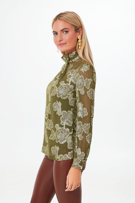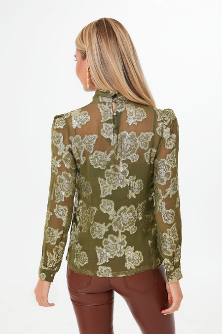 The Gold Leaf Charlotte Top is sure to become your go-to for the season. This silhouette features a slightly padded shoulder to lift the sleeve, a removable coordinating camisole lining under the sheer body, and fabric colored buttons at back and cuffs for a delicate touch. Try this blouse to elevate a suit for work, to wear with high waisted denim to happy hour or with a skirt for a holiday party.