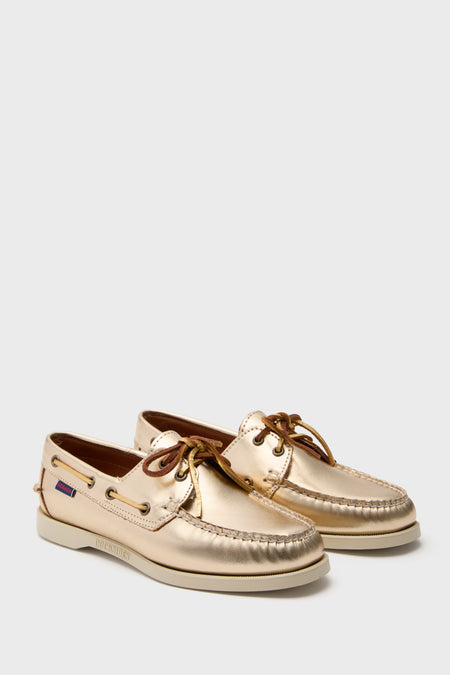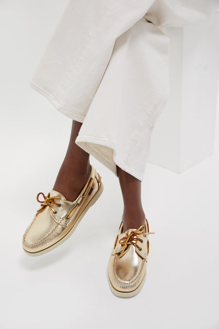Sebago reinterprets the signature style codes of its classic Portland boat shoe with a refined, glamorous edge. Named after the famous port city in New England, home to the homonymous Yacht Club, the icon is reworked in metallic fabric to add a quirky touch to any look. Pair with denim shorts and a tee or with sailor pants and a blouse!