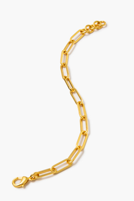 A classic addition to your collection, this should be in every girl's jewelry box and makes a subtle statement. The Gold Paperclip Chain Link Bracelet is perfect for those times when you need to let your leopard shoes shine or that geometric-print dress do all the talking, but still need to polish off the look. Style tip: turn this into a charm bracelet by the quick addition of one of our exclusive small clip connectors!