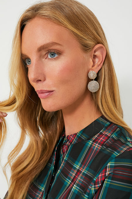 Radiate confidence and sophistication with the Gold Rhinestone Sphere Drops. Perfect for formal occasions and for adding a touch of glamor to your everyday, these earrings are lightweight and comfortable, ensuring you shine effortlessly wherever you go. Pair them with a classic black dress for a chic evening ensemble or use them to elevate a crisp blouse and denim.