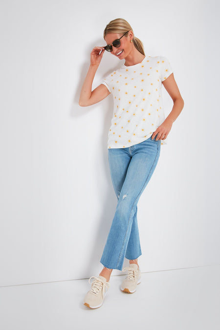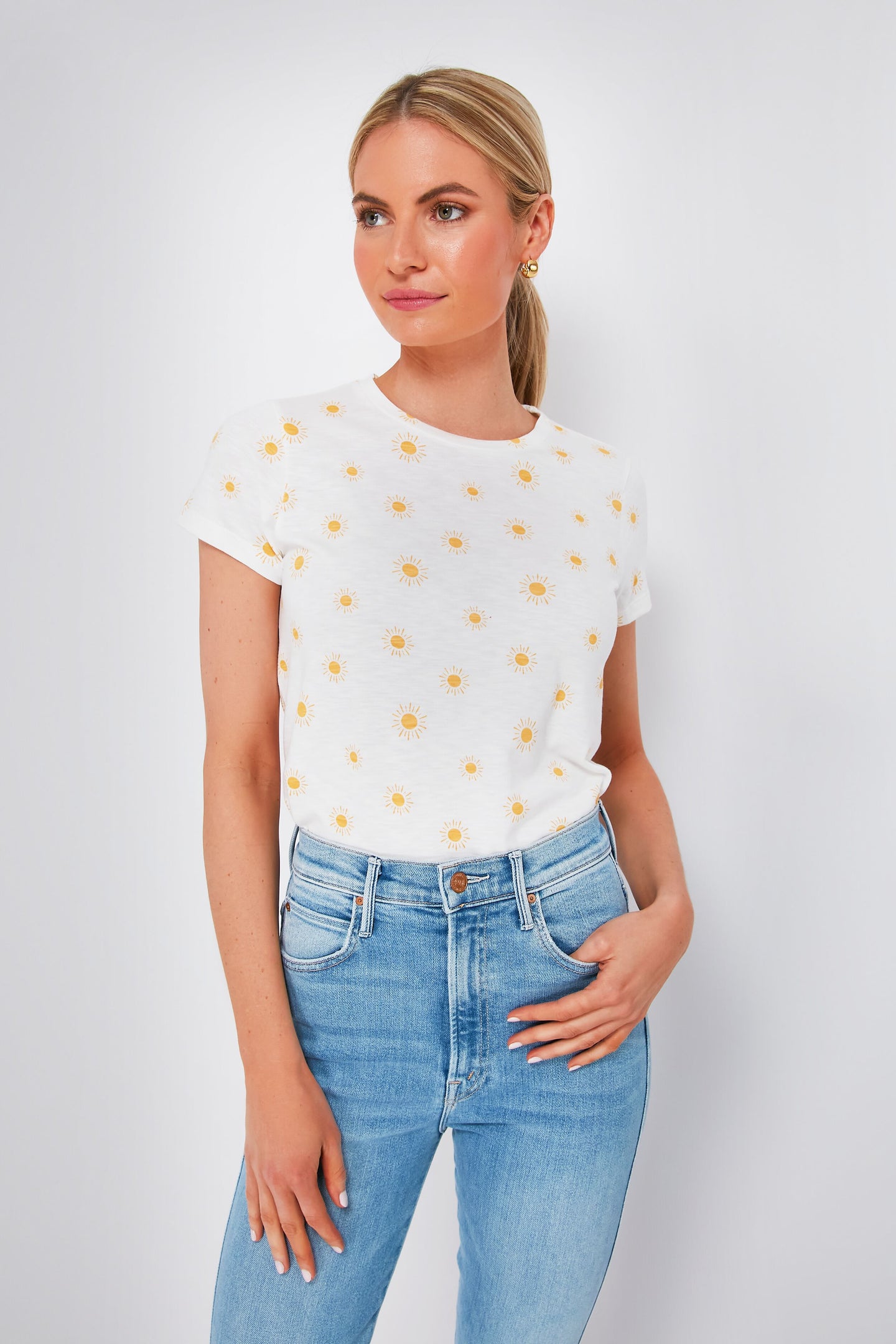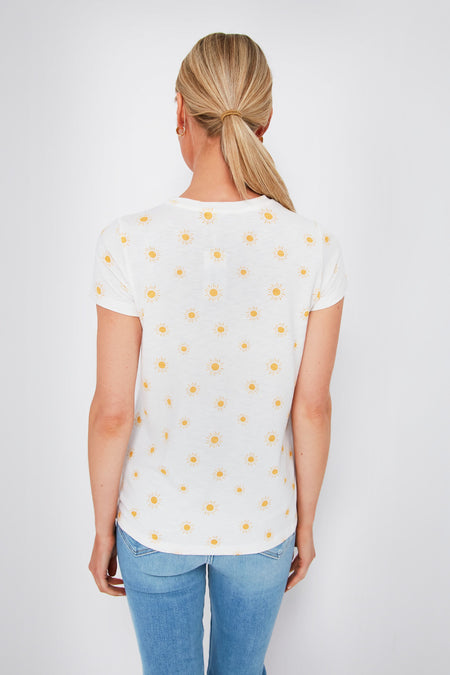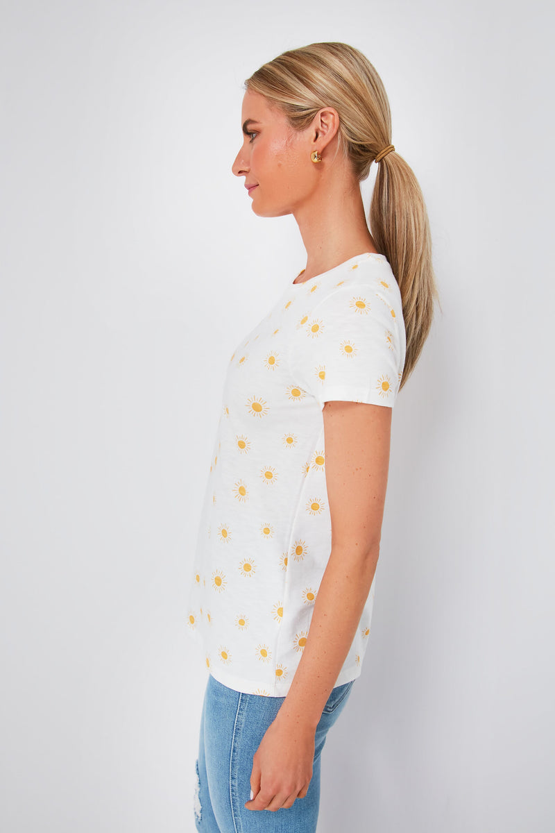 If you are looking for your next wear-anywhere, throw-on-and-go tee then you've found it. Ultra-soft and comfortable, the Gold Sun Print Swing Crew Tee is made with a slimmer fit around the shoulders and a flattering drape you are sure to love — not to mention the charming sunny pattern! Wear it under a blazer or cardigan to dress things up, or with denim and a tote for cool-girl weekend style.