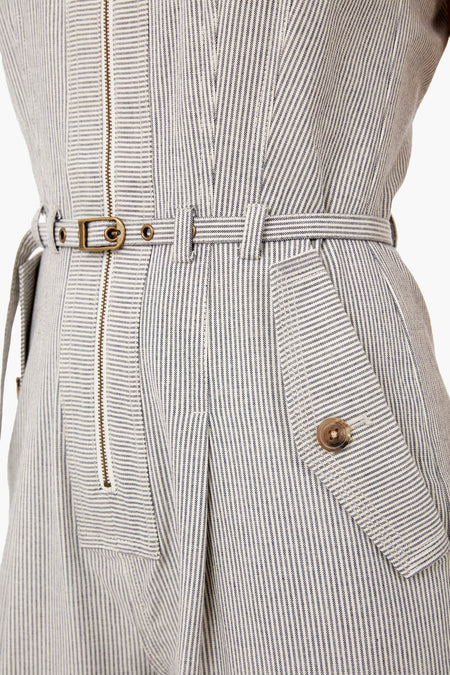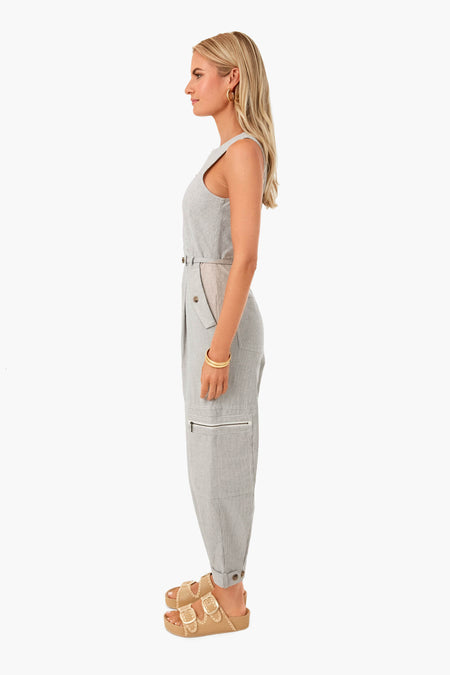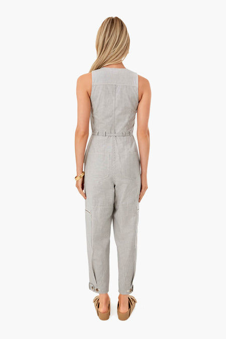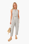 The Granite Willow Jumpsuit is made from mid-weight cotton stripe and features a simple silhouette with tapered legs, a slim waist, and sleeveless bodice. This number can be worn from a luncheon to date night with a change of shoes and accessories. Wear this jumpsuit on its own, or layered with a knit depending on the season for maximum wear!