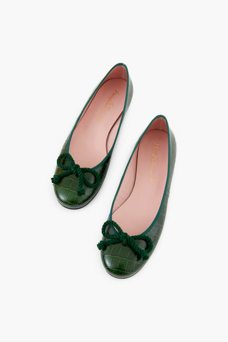 Started in 1918, Pretty Ballerinas was founded to create quality flat footwear that is made by hand. This classic flat gets an update with a green croc embossed leather and green bow tie. This will instantly become one of your go-to’s all year round!