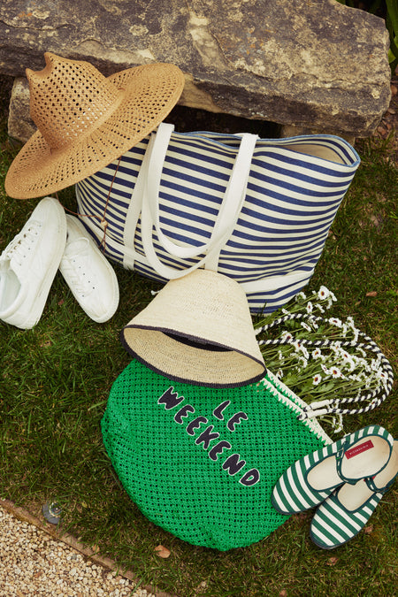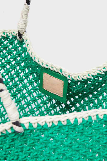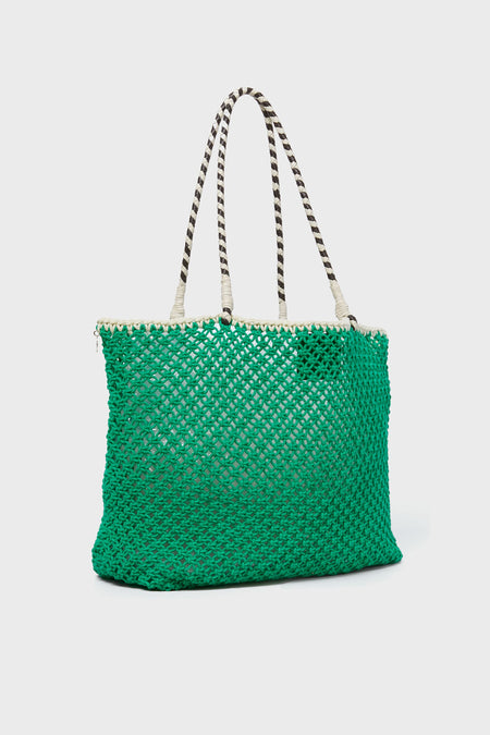 Give off that ultra-cool, off-duty look with the Green Crochet Le Weekend Lete Tote. Perfect for running errands on le weekend, this not too big but not too small tote with an open crochet weave is exactly right for holding all of your necessities. Made for summer fun and farmers market strolls, pair it with shirtdresses, caftans, or denim.