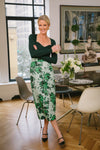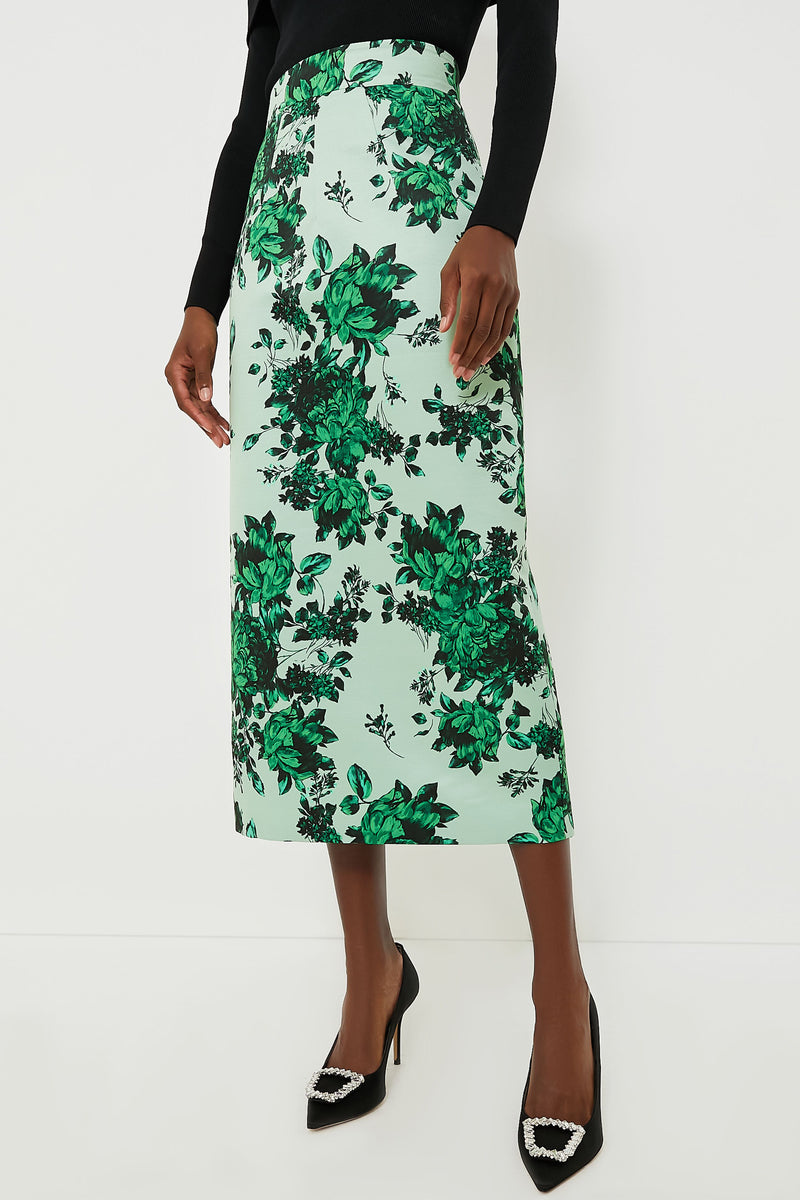 Ladylike dressing is in this season, and there's no better way to try the trend than the Green Festive Bouquet Lorinda Skirt. Cut from a gorgeous tafetta faille fabric to a slim pencil silhouette that hits mid-calf, this floral-patterned style has a flattering high rise and a back vent for ease of movement. Pair it with an off the shoulder top and heels for a party ready look, or try it with a crisp blouse and Mary Janes for a super feminine styling.