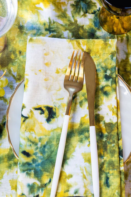 These eye-catching linen napkins are sure to make a statement on any tablescape. Sold as a set of four, the vibrant Green Marble pattern is elegant, yet bold!