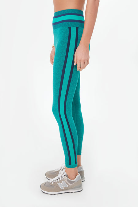 Slip into something a little more comfortable — like the Green Marle Seamless Midi Pant. In a stunning blue-green marled knit with contrast stripes to add a hint of fun, these moisture-wicking 7/8 length leggings are a need for sweaty workouts or at-home lounging. Pair with the matching sports bra and a baseball cap for a morning run (even if it is just a coffee run, we won't tell!), or with a pullover when you are craving cozy feels.