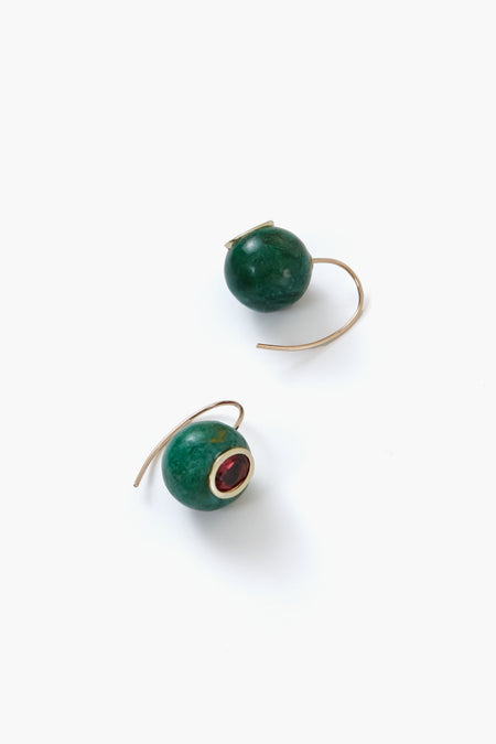 The Green Pablo Earrings are made from drops of African jade inlaid with faceted semi-precious pink rhodolite stones. Full of statement color, these drops add a bright pop to any outfit. These stunners will take you from art gallery opening to upstate getaway with ease, just pair with denim or a floral dress and you’re good to go!