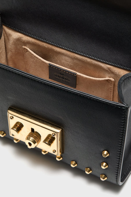 This Gucci Black Padlock Chain Shoulder Bag is an elevated take on your classic handbag. Crafted from black leather featuring gold-tone hardware and pearl detailing, this is a bag you won't want to pass up. We chose to style it with statement denim, a black top, and boots!