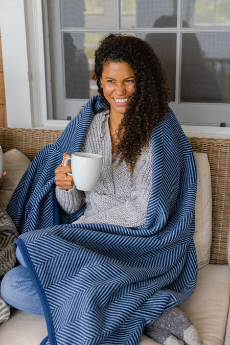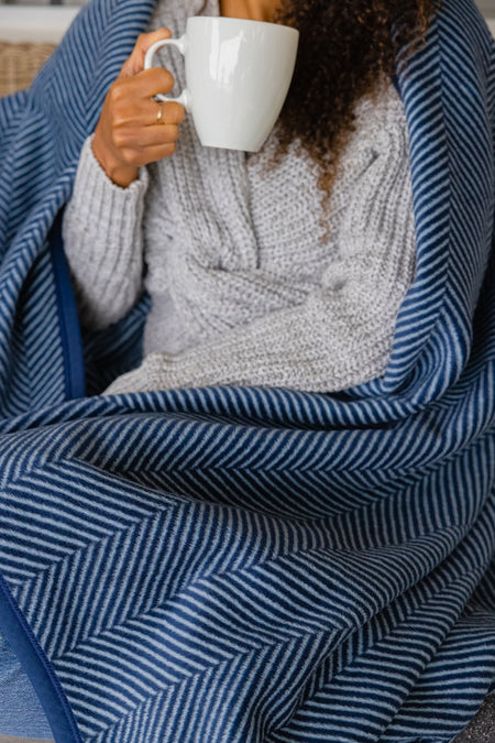 We all need a Harborview Herringbone Navy Blanket in our lives. Machine washable and dryable so you can take it everywhere without a worry, this is an extremely versatile throw. You won't want to part with this blanket, and it will accompany you through chilly weather, from beach bonfires to football games, and it will be a trusty companion for the brisk days ahead.