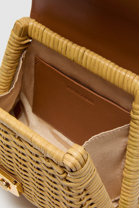 Beautifully crafted in wicker and supple leather, the Hazelwood Small Wicker Avenue Bag is a study in chic sophistication. Finished with a crest-lock closure, this ladylike satchel is designed with both a top handle and a removable shoulder strap for maximum versatility — pair it with everything from blazers to tees to dresses for a chic look.