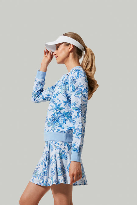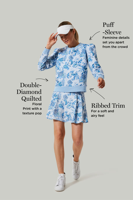Fashion and function meet in the Puff Sleeve Campbell Pullover. This sweatshirts features feminine sleeves, a diamond quilted construction, and rib trim. Made in a soft-to-the-touch fabric that has quick-dry properties and SPF protection, you will want to wear this from your morning coffee to a chilly warm-up on the courts.