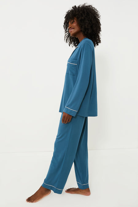 Does anything feel better than cozying up in a chic pair of pajamas? The Heritage Blue PJ Set merges a classic long sleeve silhouette with sustainable TENCEL™ modal fibers for the perfect relaxed fit. Cut from a temperature-regulating knit fabric that drapes and falls in all the right ways, you'll be enveloped in comfort from the second you put these on — plus they're machine washable and gentle on the skin, so these are a no-brainer!