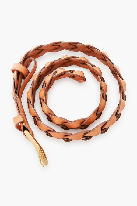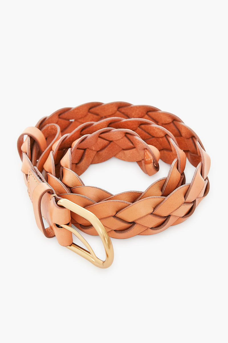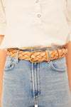 The Honey Carson Braided Belt is woven in vachetta leather with a pale gold finish buckle. Pair with dresses and skirts to elevate your look!