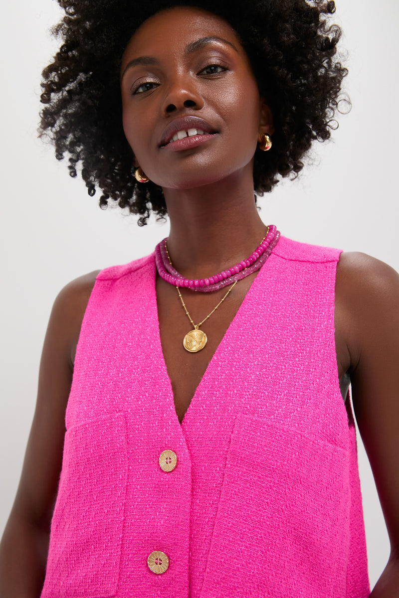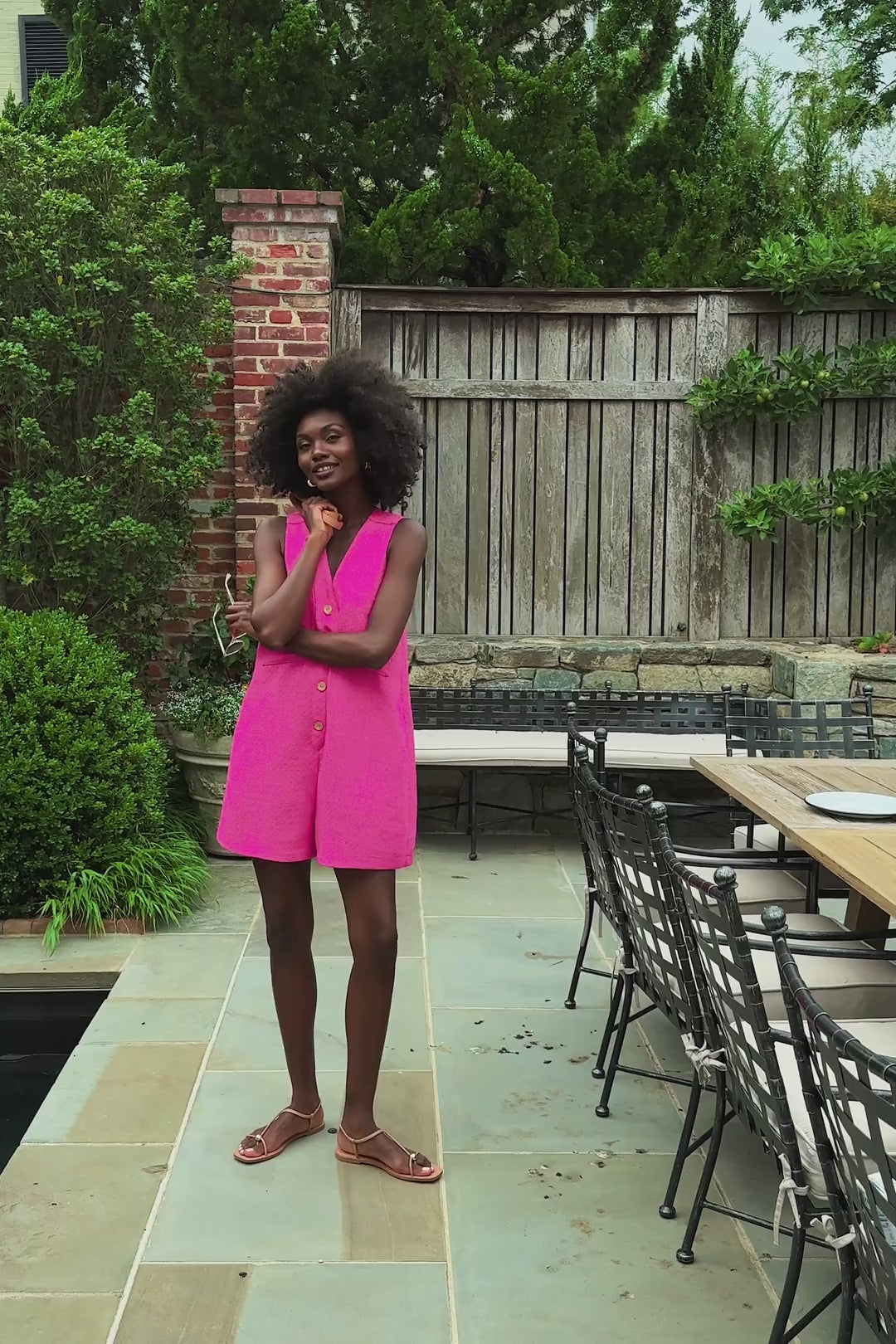 Effortlessly chic, this one-piece is perfect for anything and everything! From brunches and get togethers to happy hours and vacations, this easy yet elevated style has you covered. The Hot Pink Myla Romper features two front pockets at the chest, gold button detailing for some extra shine, and a textured fabric to create cool contrast. Pair with glitzy flats and bold accessories for glamorous dinners on your next getaway!