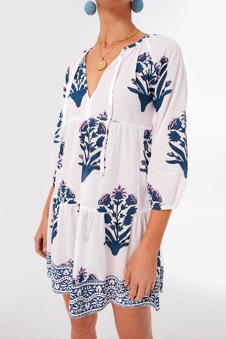 The Indigo and Violet Palladio Garden Priya Coverup is an easy and relaxed silhouette that was made for lounging poolside. Three-quarter length sleeves help to keep you from getting too much sun when you're out all day, while a dropped waist and flouncy contrasting hem add a bit of volume to make this airy number flow in the warm breeze. Perfect for throwing over a swimsuit after a day by the sea, or grabbing a quick drink at the beach bar, just add sunglasses and a chic tote and you're ready to chill out in style.