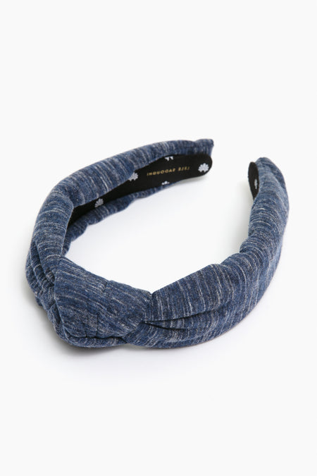 Lele Sadoughi combines abstract shapes and feminine detailing for a modern feel. The Indigo Cardigan Knit Knotted Headband features a top knot detail with white accents for a chic but minimalistic look.