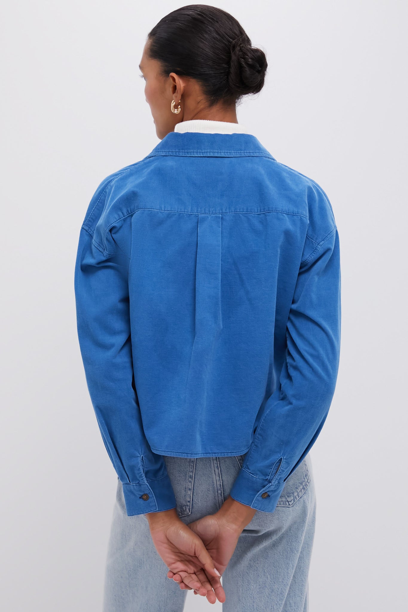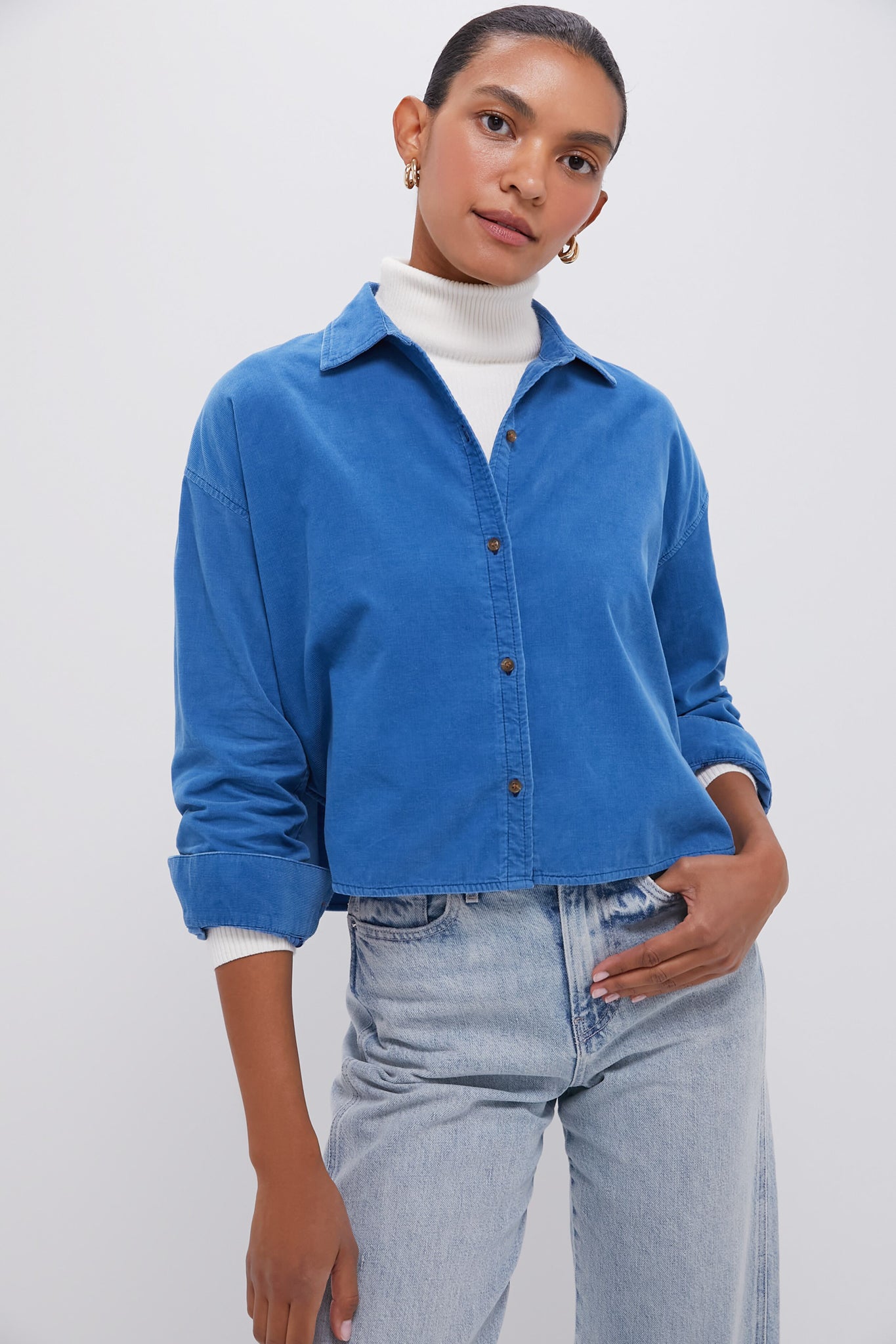 A classic button-down goes for miles in your wardrobe and this Indigo Corduroy Cropped Jasper Button Down is no exception. Polished details like double fused collar, scalloped side slit, center back box pleat, and long sleeves with cuff and placket for easy roll up, this cropped silhouette is a styling winner! For business or pleasure, wear it tucked or loose, this effortlessly polished piece is great for year round wear thanks to its versatile styling options.