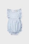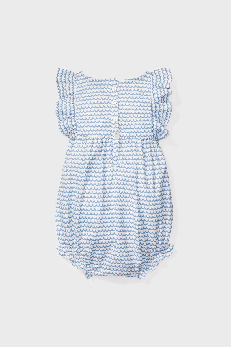 The La Mer Ruffled Romper, inspired by the ocean, is a darling romper with sweet ruffled hems and delicate pearl buttons, for your little one. Perfect for hot summer days, this soft romper is one your little-one will live in!