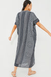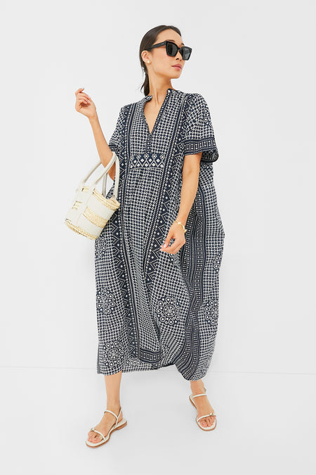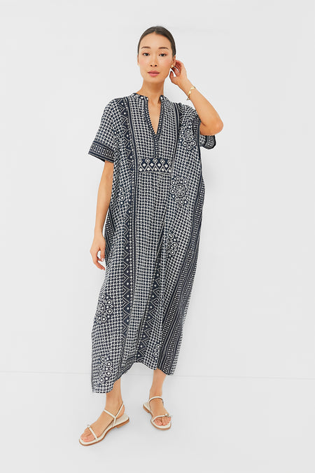 Effortless and easy breezy, the Emerson Caftan has a flowy silhouette with a hidden interior waist tie for an optional fitted look. Made from lightweight and breathable organic cotton, you'll be living in this silhouette during warmer months and on tropical getaways. Casual enough for a day at the beach when paired with a sunhat and a tote, or dressy enough for drinks with espadrilles and statement earrings, this is one versatile style!