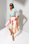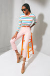 Featuring a cropped, straight leg silhouette in a fun pastel pink hue, the Into The Midst High Waisted Rider Flood is a must-have for the season. We are loving these with flats and a striped tee for an effortlessly chic look.