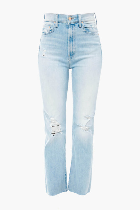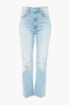 The Island Afterhours High Waisted Rider Ankle Fray are the perfect high-waisted straight leg jeans. Made from stretch denim with an ankle-length inseam, distressed knees, and frayed hem, there is no question why this fabric is MOTHER’s best-selling white denim. Add a tee and sneakers for on-the-go weekend style.