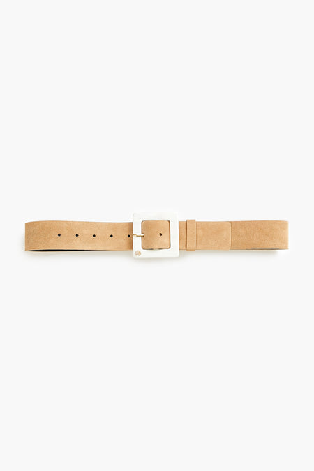 Famous for creating the beloved knotted headband, Lele Sadoughi makes trend-setting and expertly crafted accessories. This belt is made from calf skin leather and an ivory acetate buckle. Pair with denim and a feminine blouse to elevate your look!