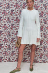 Sleek and elegant, the Ivory Adi Knit Dress is exactly what your closet needs. A perfect not-too-dressy-not-too-casual piece, this fit and flare mini is suited for lunch dates, lowkey events, and whenever you want to go for a neutral chic look in your outfit rotation. Featuring ultra-wearable touches like a round neckline, long sleeves that get wider at the cuff, and a unique ribbed row texture, you'll be styling this knit number with boots, flats, and kitten heels all year long!