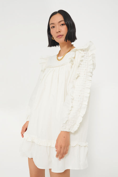 The Ivory Anabelle Dress is one of our latest favorites, and we know you'll fall in love with it too! This simple yet chic mini features sweet ruffled details throughout, and is finished with a round neckline, pleated bodice, and a flirty flounced hem. Perfect for game day, Sunday brunches, picnics in the park, and more, we are styling this easy silhouette with boots and a shoulder bag for a flawless ensemble you’ll want to put on repeat.