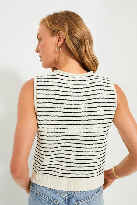 Step out in style and comfort with the Ivory and Black Striped Bridget Sweater Vest. This chic number features a classic knit body with a ribbed hem and front button closure. Wear unbuttoned over a tee with easy denim, or pair with a chino shorts and sandals!
