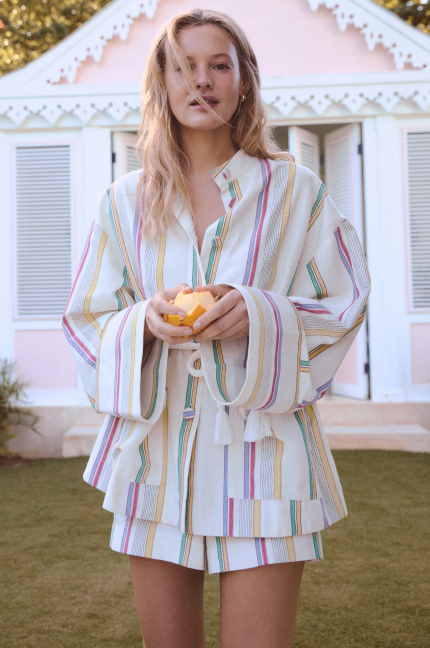 A Tuckernuck style staple, the Mason is back and better than ever. Our design team spent months perfecting and testing our signature stand collar to get it just right. As Marvin Gaye once said: "Ain't no collar high enough," so bring on the ruffles and drama! Updated in a beautiful stretch crepe fabric, this swing shape blouse reminds us of our favorite mod silhouettes from the 60s and 70s. Ready for al fresco dinners with family, cocktail parties with friends, and every social event on your calendar, the occasions are endless for this bow tie-back number!