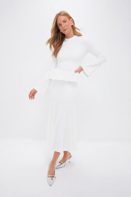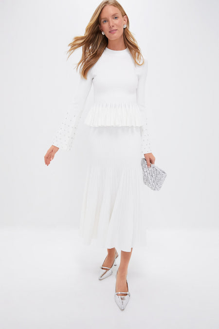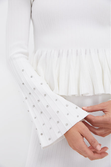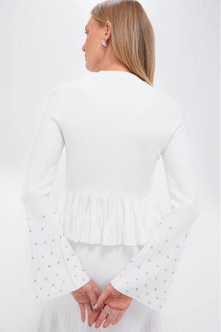Lean into winter whites with the Sirena Top. Featuring rhinestone embellished bell sleeves and a feminine silhouette, this top can elevate any outfit. We recommend styling it with the matching Anitha Midi Skirt, silver heels, and a rhinestone clutch.