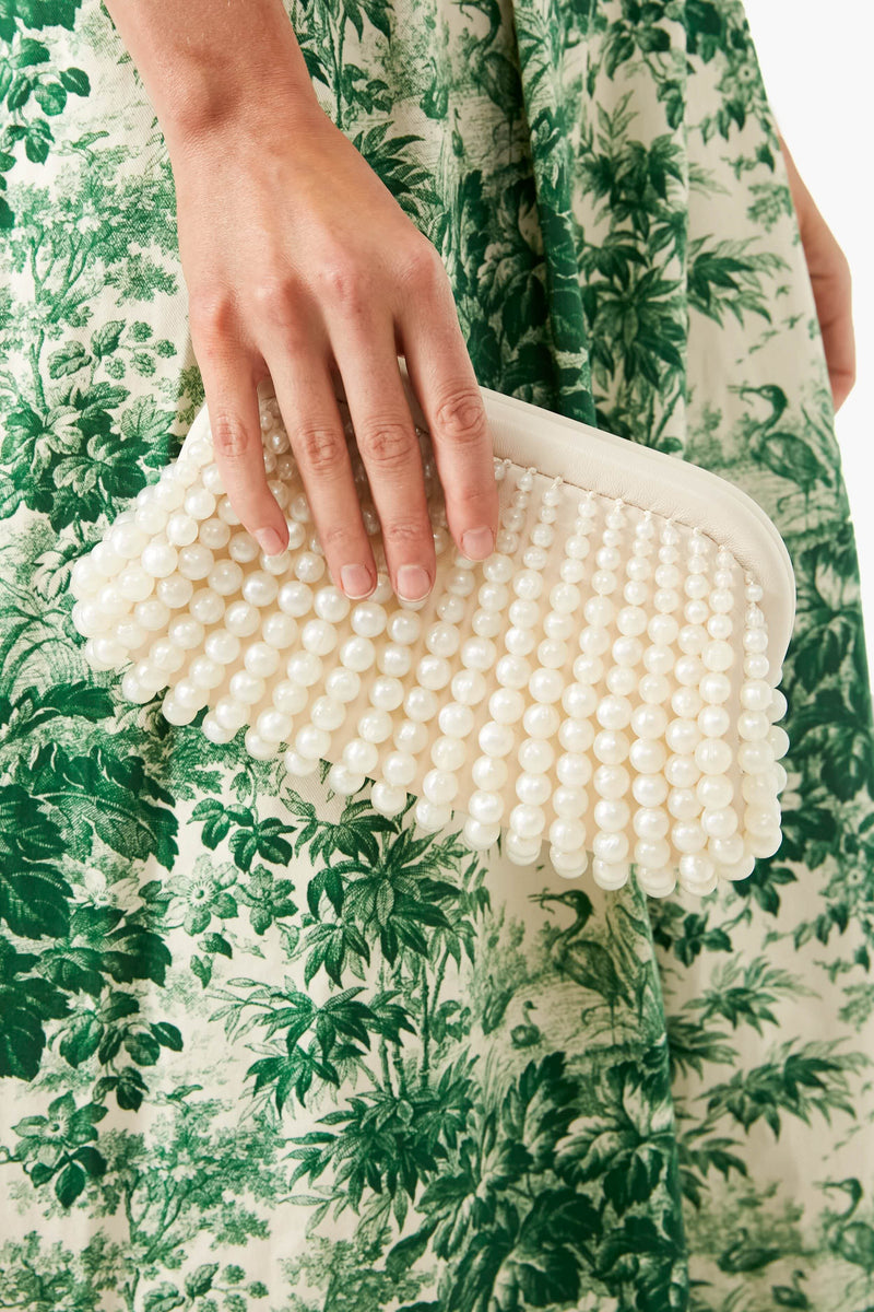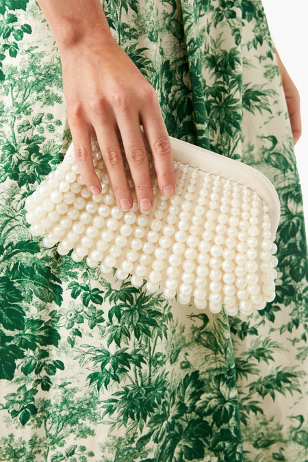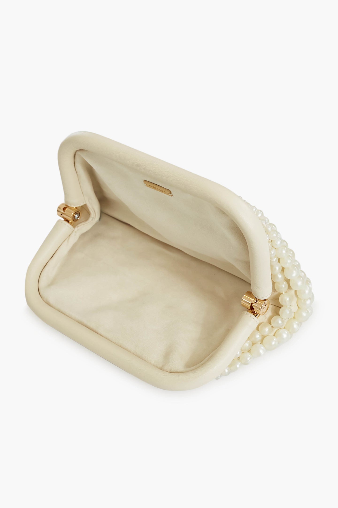 The Ivy Nia Clutch is made from faux pearl acrylic beads layered over a supple leather pouch. With its neutral hue, this artful clutch can be styled with everything and anything. Carry it with you to happy hour and beyond for an elegant look.
