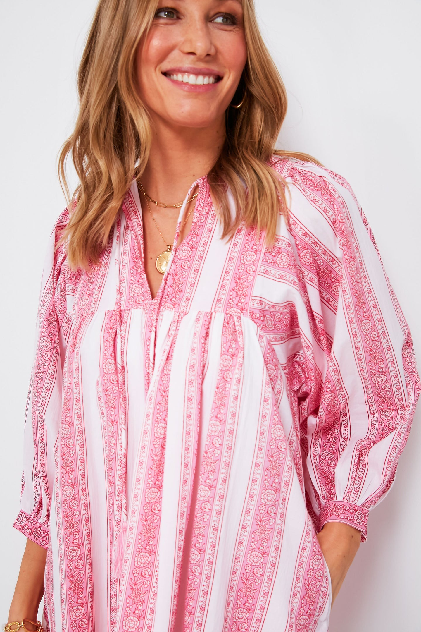 The Jaipur Stripe Daisy Dress is the brand's fan favorite silhouette with its billowy sleeves, breezy fit, and tassel finished ties at the neck. With versatile styling options, it's perfect for vacation, a casual workday, lunch with friends, a bridal shower, or just because! You can’t go wrong with this feminine and flirty number, just add your shoe of choice, sunnies, and let the compliments roll in.
