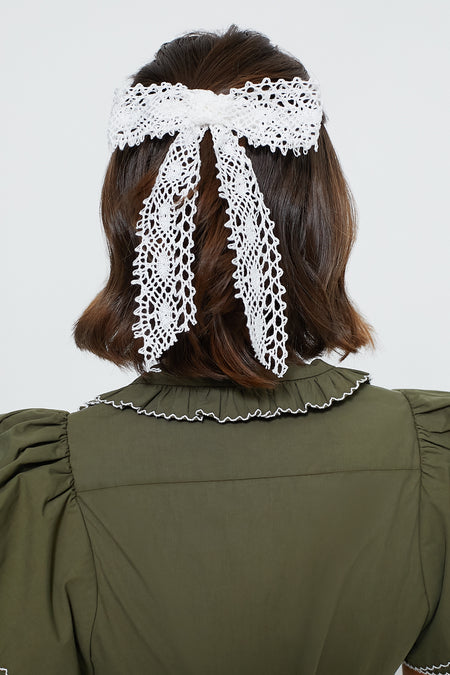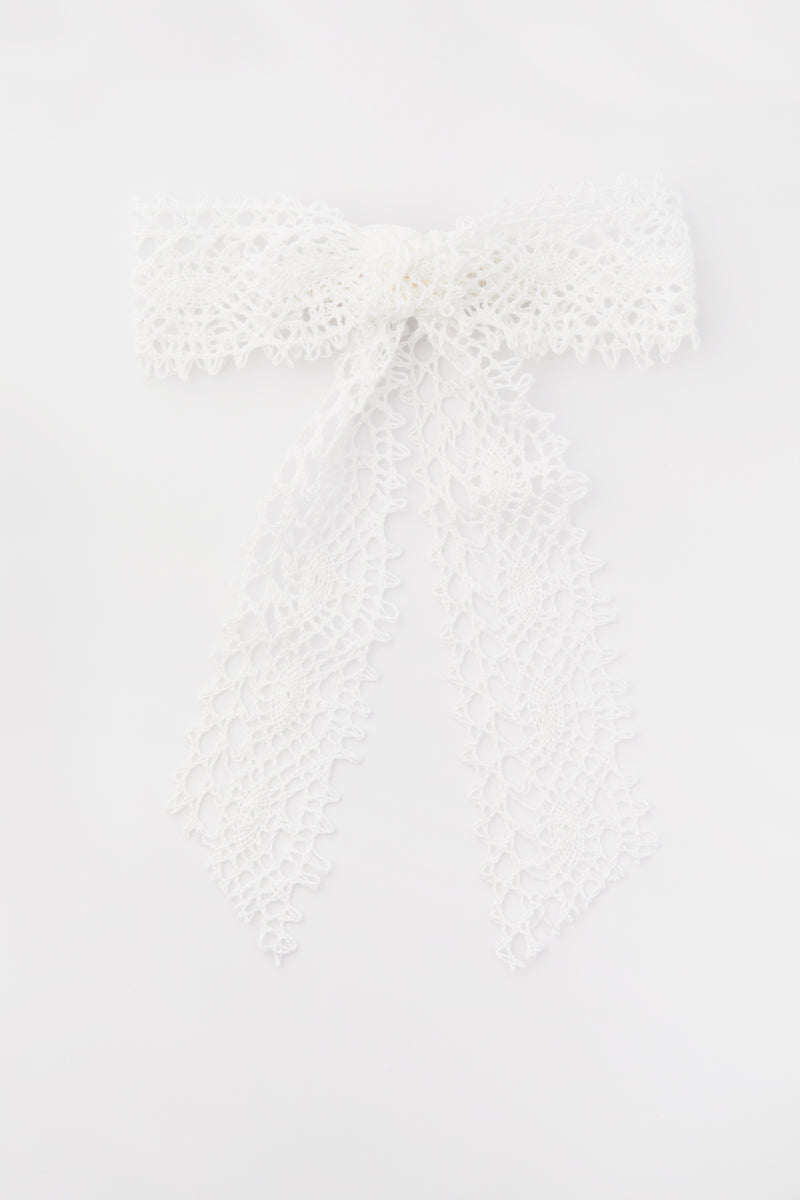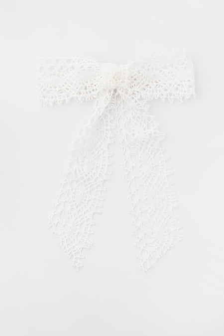 The Marbella Bow Barrette was designed in collaboration with Julia Berolzheimer, who was inspired to create a piece that she would be excited to slip into her hair on glorious summer days. This bow is crafted by hand in New York of vintage crochet ribbon from the 1960s. It's finished with an automatic French barrette clasp, making it versatile enough to style a number of ways.