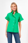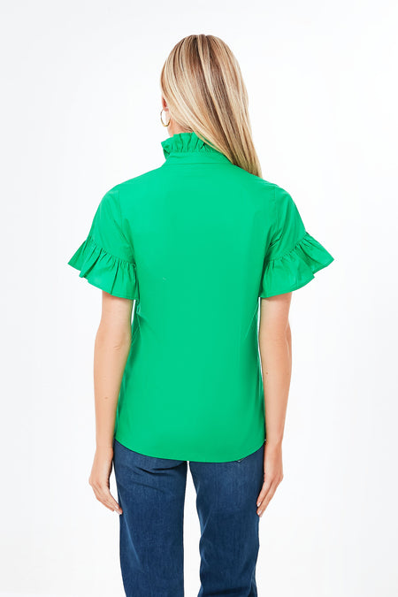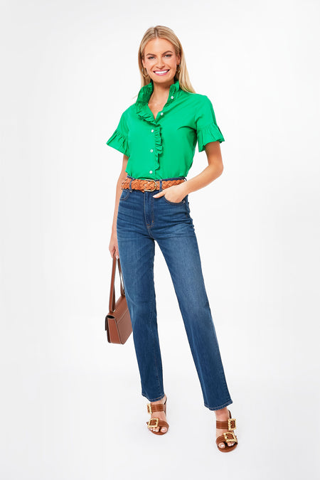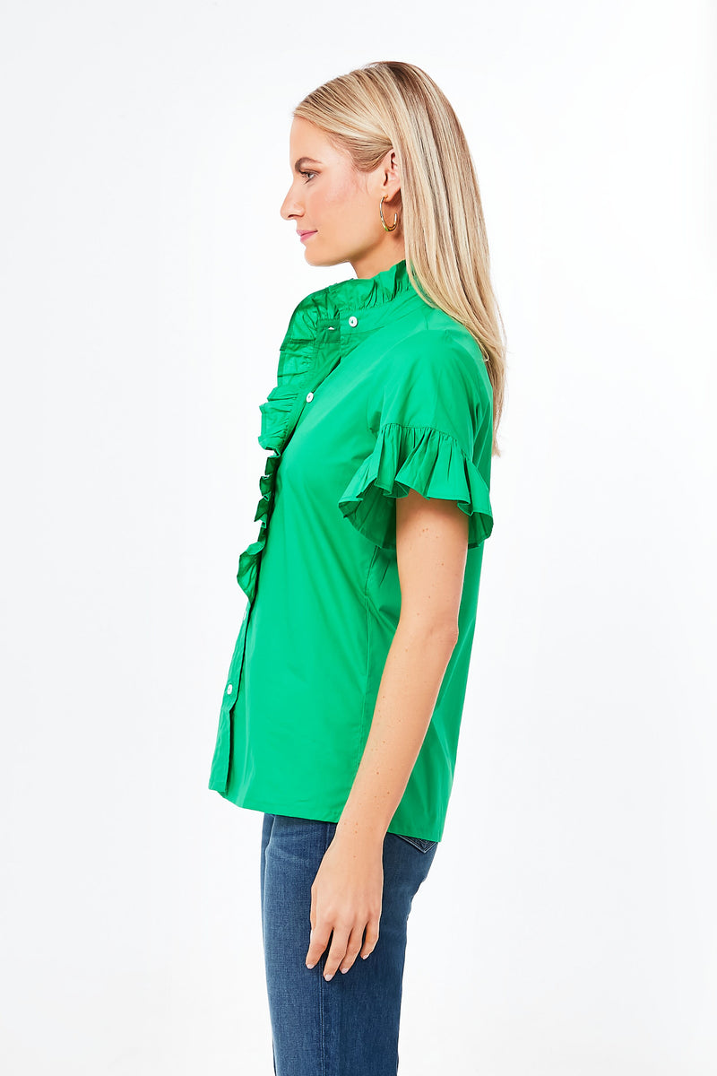 A crisp cotton blouse with endless charm, the Kelly Vanessa Top elevates a classic by adding a bright and cheery hue. With a stand collar that frames the face, flattering bell shaped sleeves, and rippling ruffles embellishing the placket, we've never loved a button down more. Perfect for the everyday when paired with denim and flats, great for brightening up the office with trousers and loafers, or light enough to pack in a getaway bag, this silhouette can do it all.