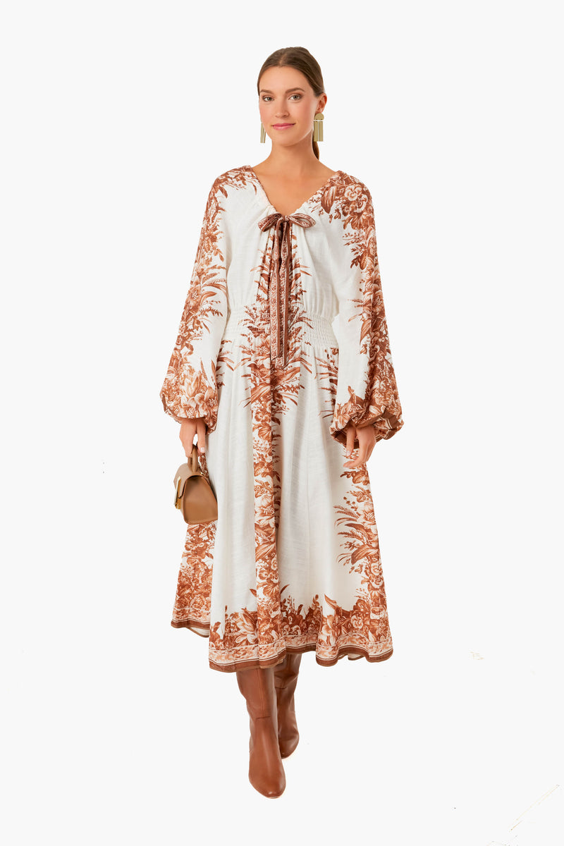 Relaxed yet luxurious, we love the comfortable fit and elegant print on this maxi. The Khaki Floral Cryssa features an adjustable necktie, long bubble sleeves, and a smocked waist for a majestic, vintage-chic look. The perfect fall aesthetic piece, we are adding boots, gold jewelry, and then letting the dress do the talking.
