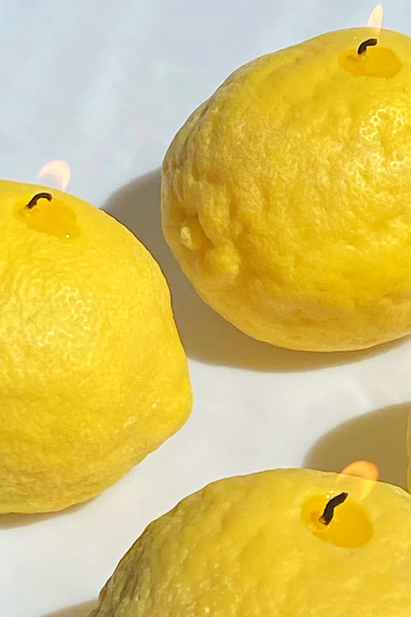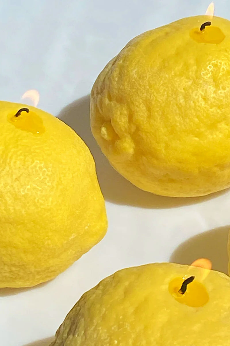 Elevate your candle game with the Large Lemon Candle. These biggies are all citrus scented and ready to bring the juice to your home now. This candle looks great on its own, as a pair (or bunch) as well as in a fruit bowl… you just have to watch out for inattentive chefs!