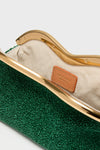 Turn heads at your next event with the Leaf Baci Clutch. This simplistic design is crafted from textured raffia with a metal wave-like frame. Style with everything from dark wash denim and white button downs to vibrant maxis and gold jewelry.