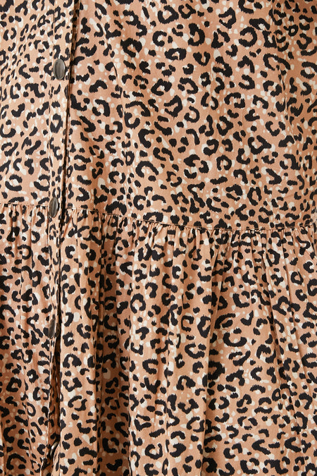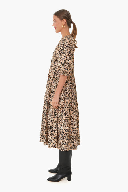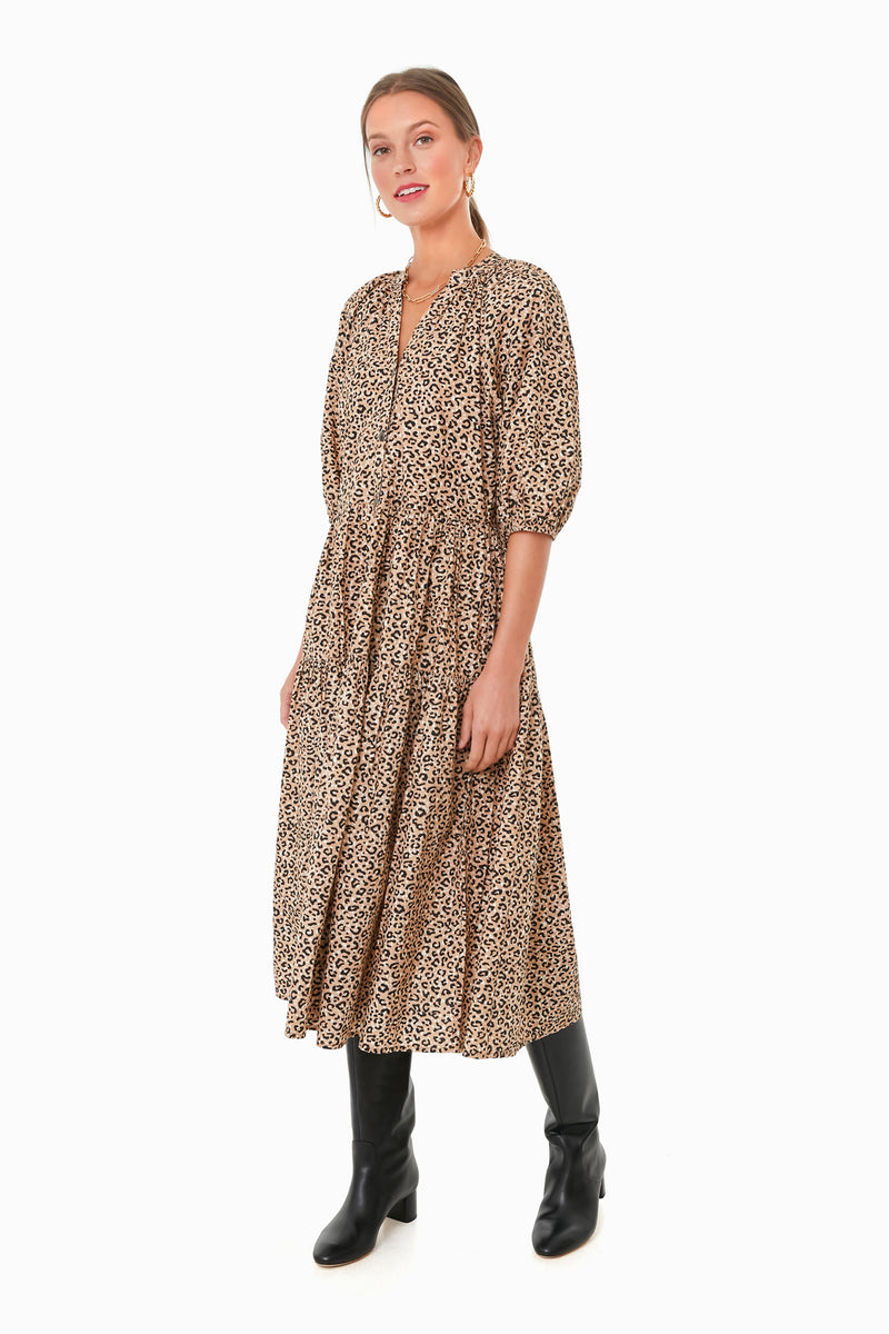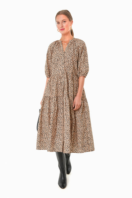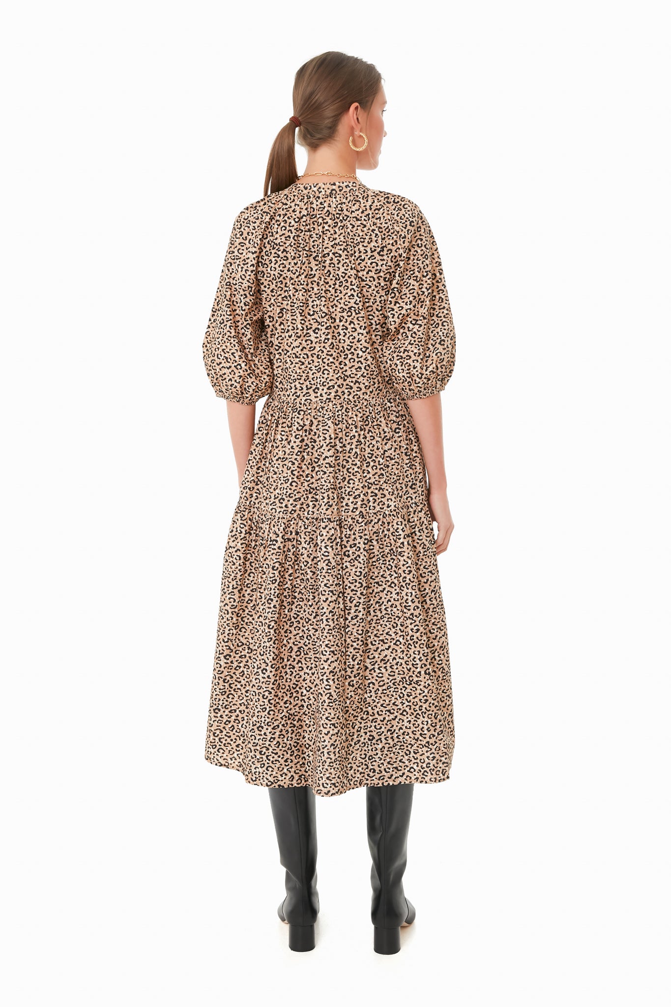 The Leopard Bouquet Mitte Dress is the perfect dress to transition you across seasons. Midi length with an abstract leopard print throughout and cut from organic cotton poplin with a v-neckline and snap button front, the poet sleeves and soft gathers at the waist add to the feminine feel. Layer your favorite turtleneck below as the weather cools or wear on its own with boots and gold jewelry for dinner with friends.