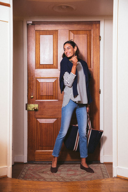 With a flattering high rise and straight leg silhouette, the Let's Trip The Swooner Rascal Ankle is sure to become your new go-to season after season. Crafted from cotton denim with a hint of stretch in a light blue wash, this timeless style will keep their shape wear after wear. We are pairing these jeans with a light sweater for farmers’ market runs and with a boho-chic blouse for dinner with friends this season!