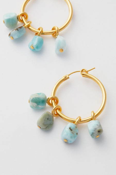 - Material: Gold Plated Sterling Silver, Larimar Stones
