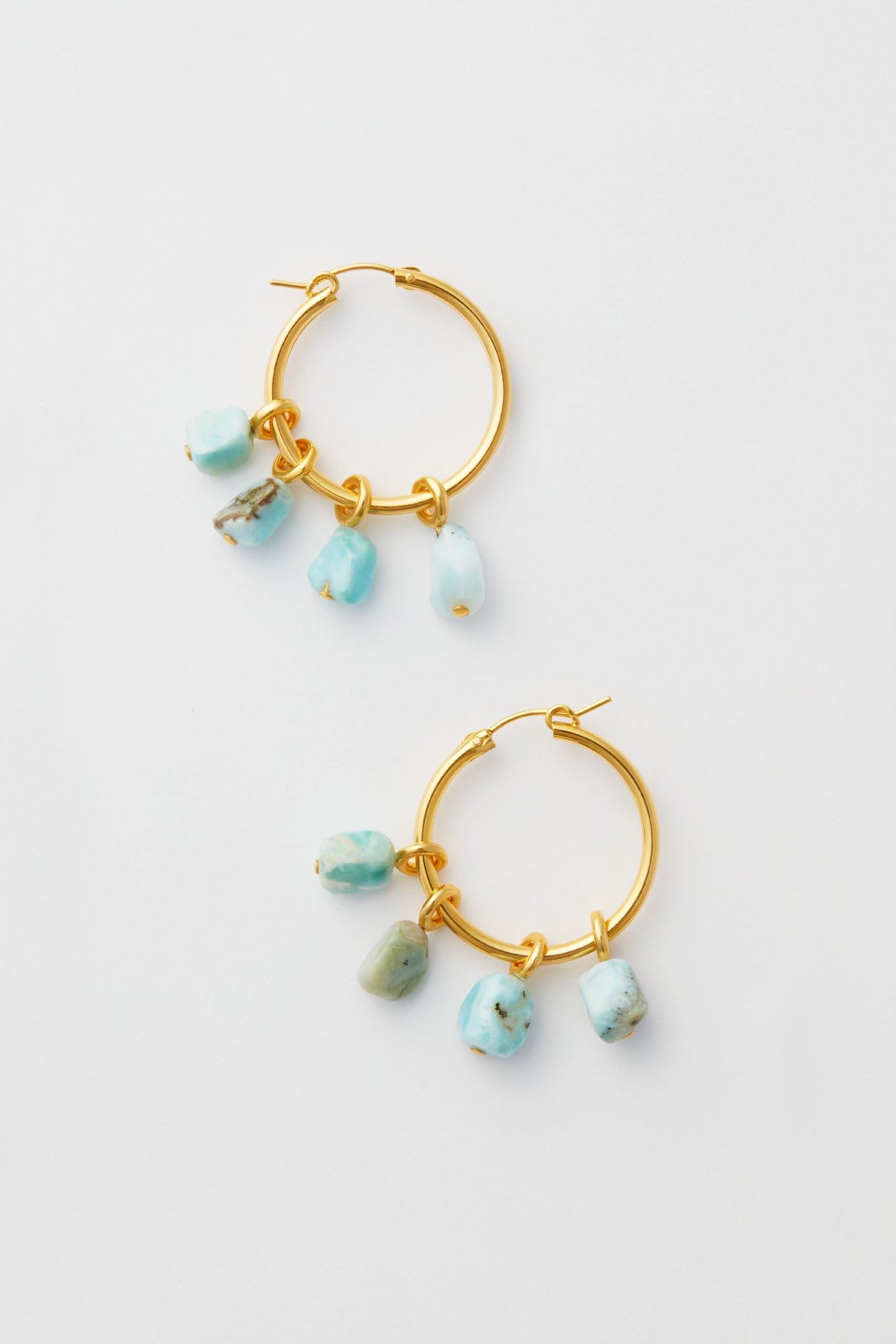 Nothing completes a look quite like a pair of classic gold hoops. The Light Blue Wanderer Earrings take the timeless style up a notch with the addition of dangling larimar stone charms that provide an extra-special touch and a tiny splash of color. These make the perfect gift for grads, besties, and bridesmaids, and they are a great treat yourself purchase too! Pair with a sundress and sandals, denim and a tee, or a sleek blazer — they look super chic with all outfit types.