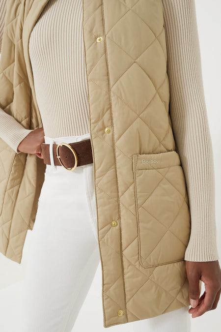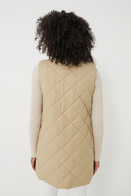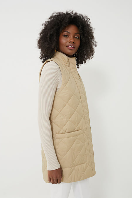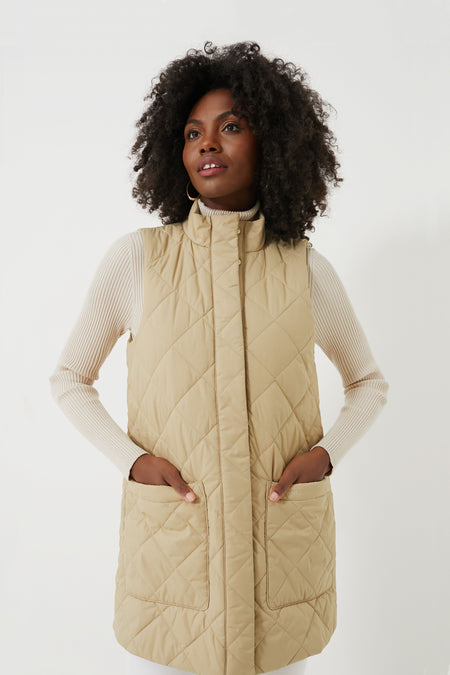 The Light Fawn Cosmia Liner is the perfect lightweight layer to help you keep warm in cool weather. This diamond-quilted vest is made with generous front patch pockets at the hips and a wind-blocking stand collar to keep the chill out in style. Wear this chic outerwear style over a striped long sleeve for a classic look, or with a turtleneck for an extra cozy feel.