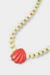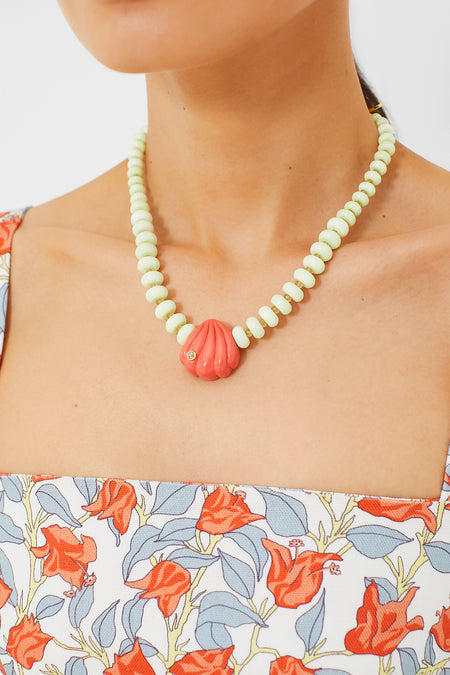 Light Green Sebastian Necklace is serving up major mermaid-chic vibes. With graduated lemon chrysoprase and dotted faceted citrine beads and coral-colored carved clamshell focal set with semiprecious sky blue topaz, this gold-plated collar is the kind of accessory your friends are going be jealous of. Pair with floaty floral dresses, easy tees and tanks, or a coverup — this style can be dressed up or down endlessly.