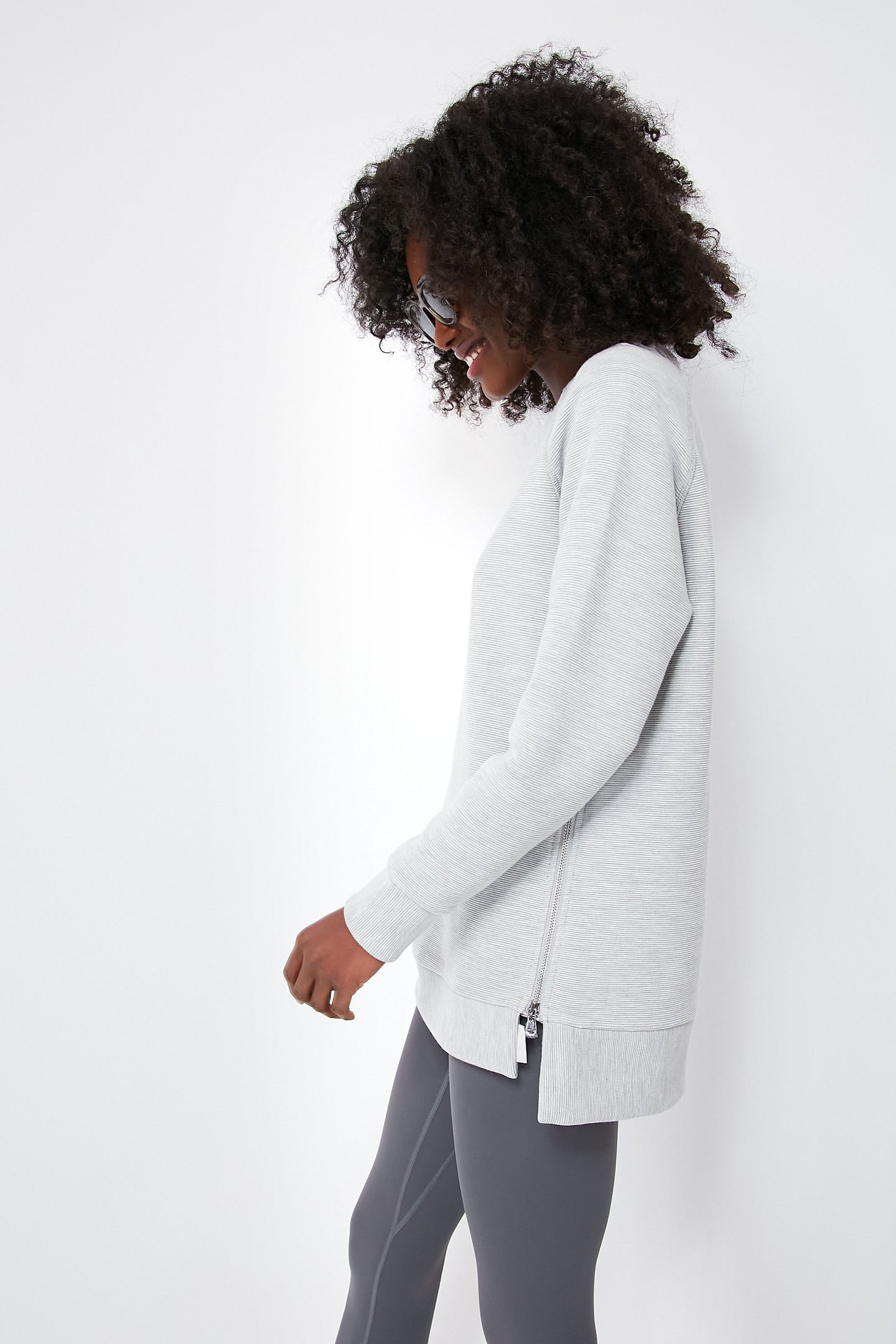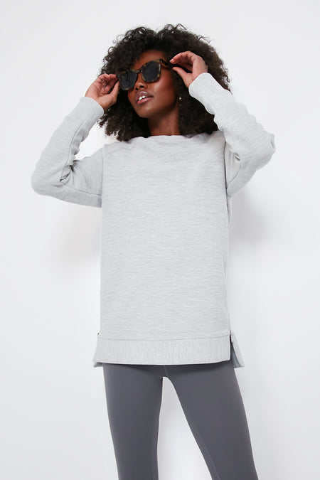 The boxy, oversized Light Grey Marl Manning Sweatshirt is cut from ottoman rib fabric, designed to take you from barre to brunch and back home with comfort and style. This casual-chic crew features a dropped back hem to provide extra coverage when you want it, while contemporary size-zip detailing allows for versatile styling options and an adjustable fit for when you want a more relaxed feel. Add leggings as you head to your morning workout and swap them for sweats for an easy WFH outfit that requires zero thought.
