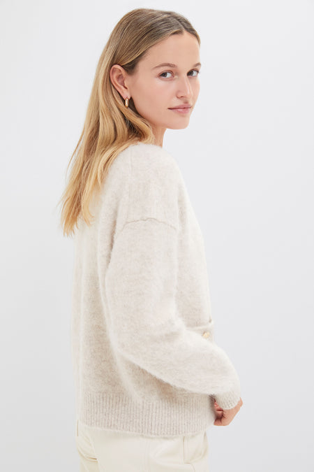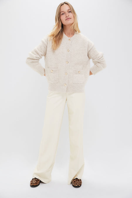 Crafted from a a fuzzy alpaca blend yarn, the Light Oat Bobbie Cardigan is a timeless knit features a high crew neckline, two patch pockets and brand signature gold buttons. Style with jeans and a kitten heel for the office or wear over a dress with heels for date night. You’ll always find an excuse to wear this sweater!